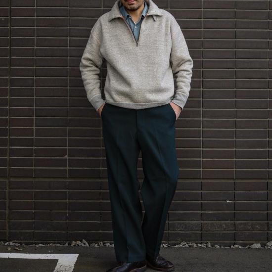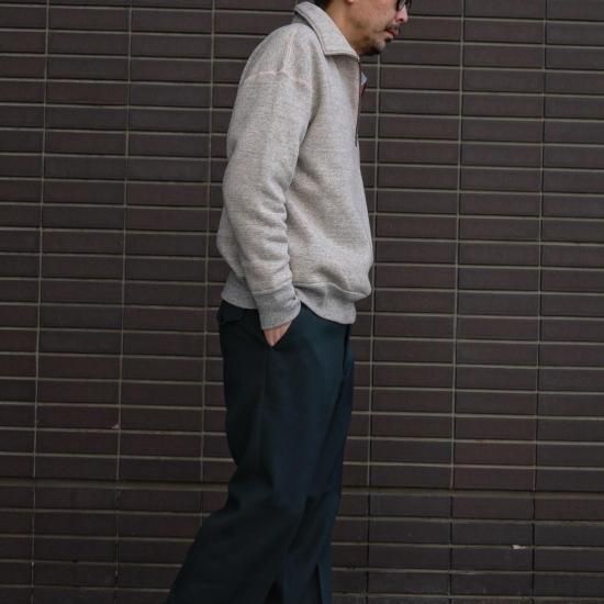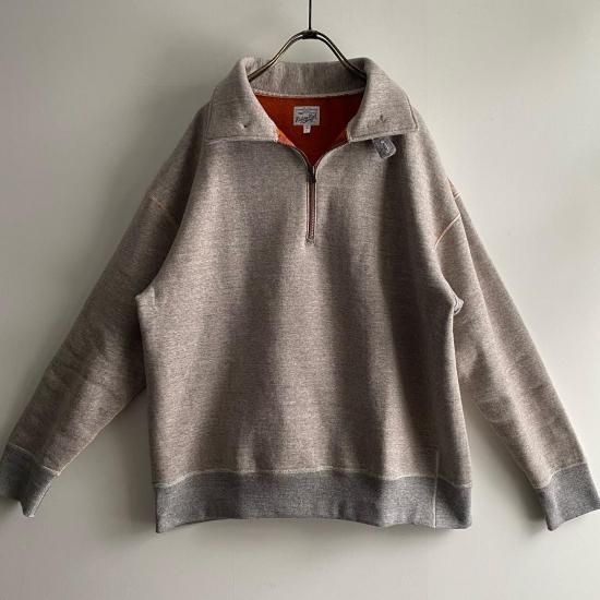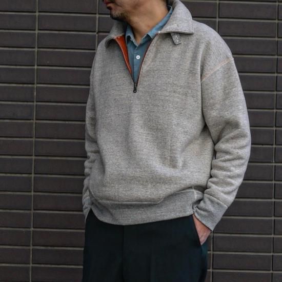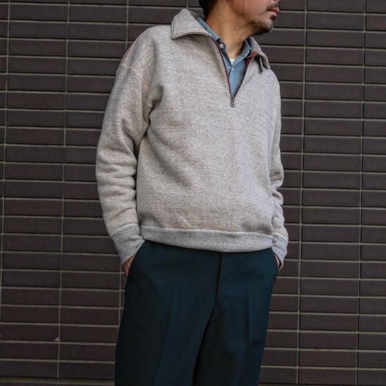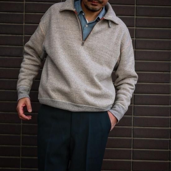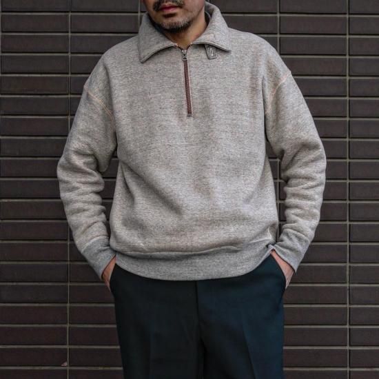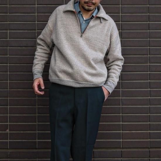 ミリタリースウェットに見られるハーフジップですがUSAFAの様にリバースウィーブ仕様ではなくアズマ編み機の特徴である丸胴を裁断する事無くそのまま採用。