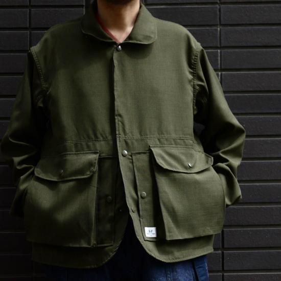 ハンティングジャケットとミリタリージャケットをミックスさせたデザイン。