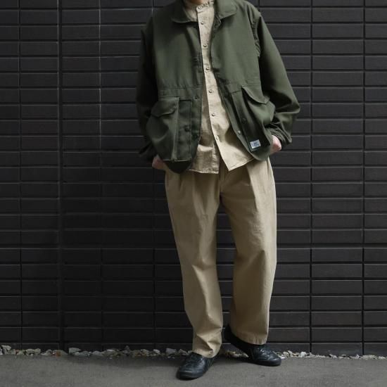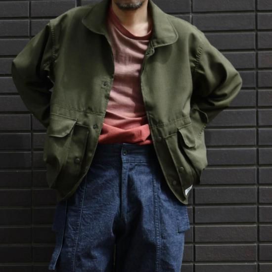 ワークやミリタリーアイテムにはない品のワークウエアではあるなかなか見ない個性の感じるオリーブ系の色味になります。