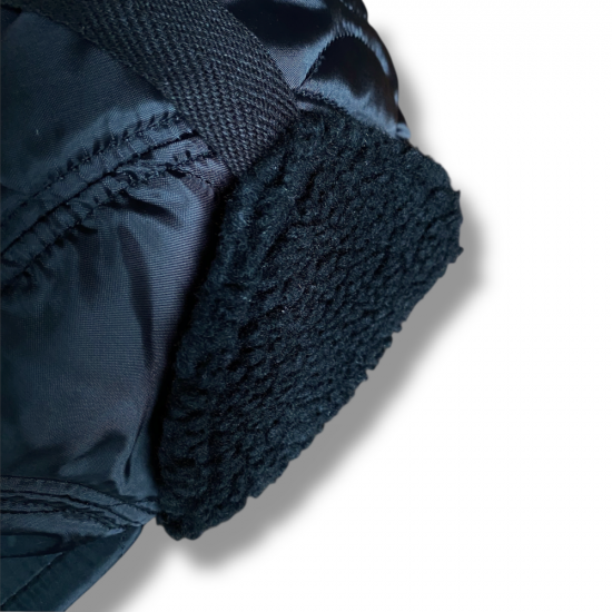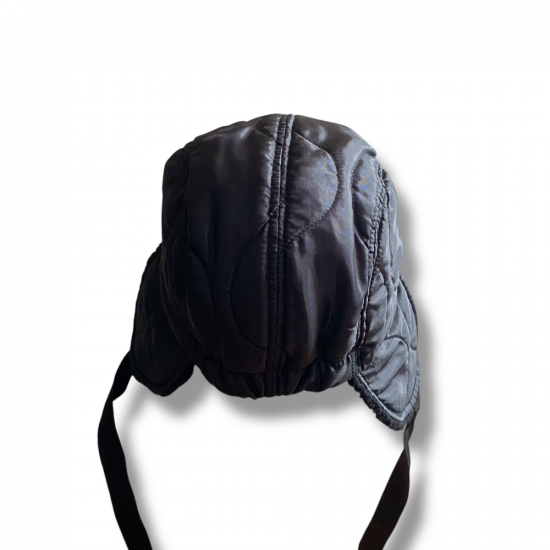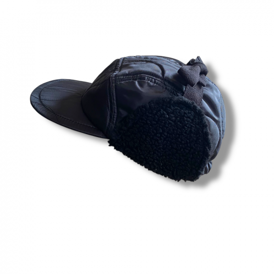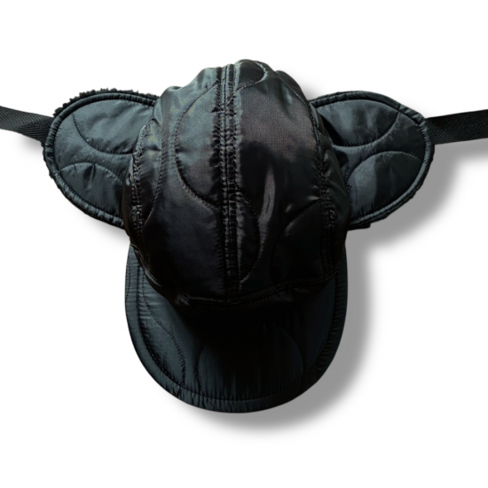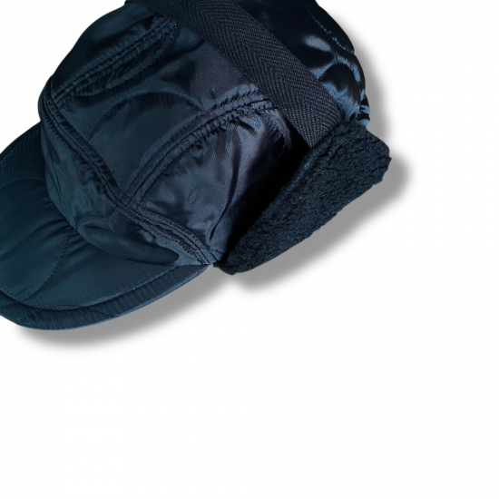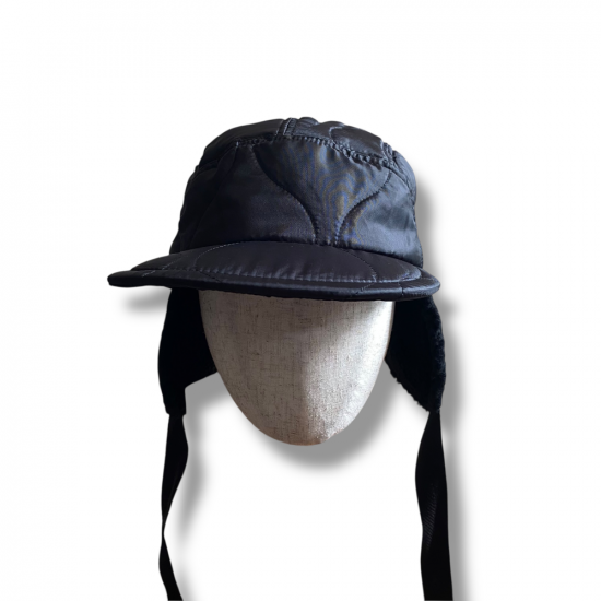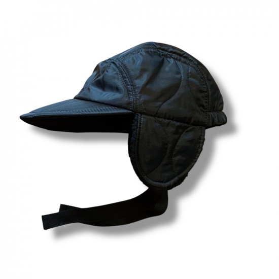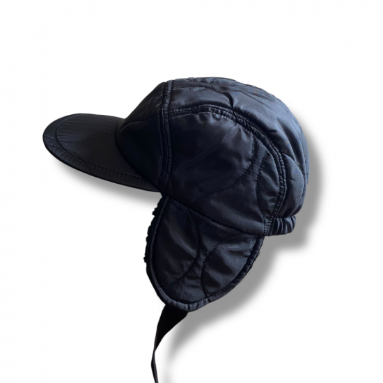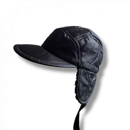 キルティングのライナージャケットをリメイクしたようなハーフムーンキャップ。