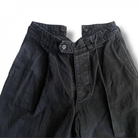 50年代に実在したフランスの鉄道員が着用していたパンツをそのままにシルエットを立体的に作り直したグランクの代表的なモデル。